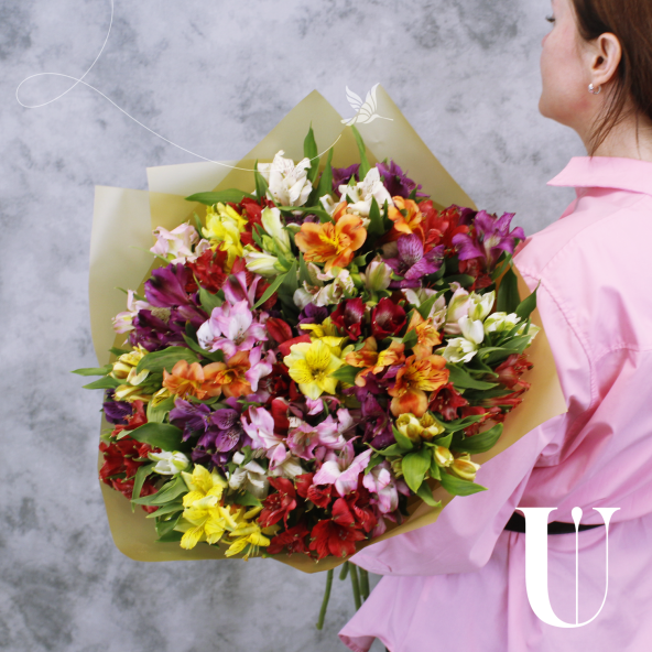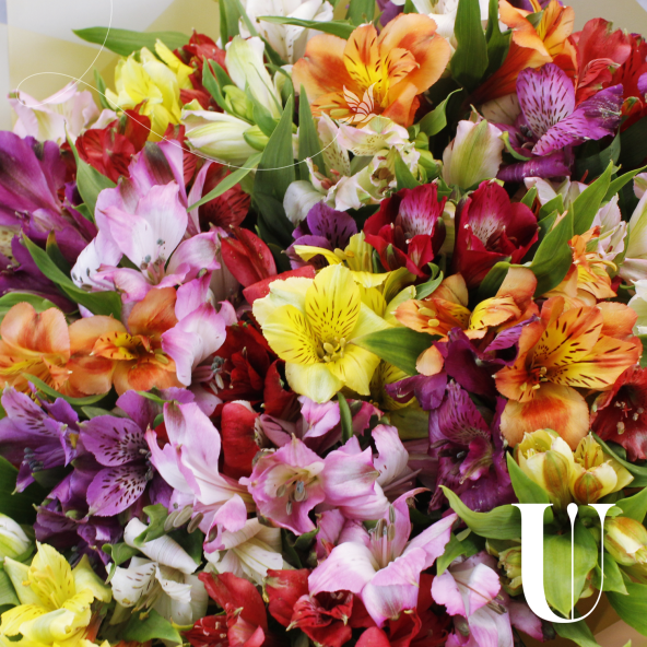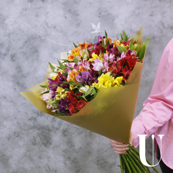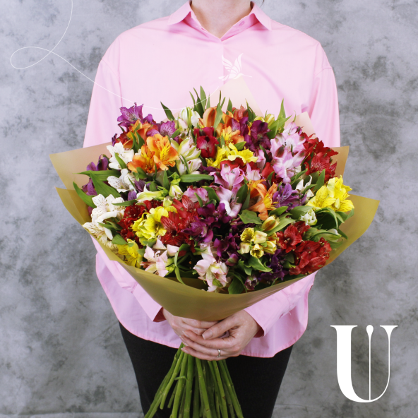 Классический монобукет из 35 альстромерий микс ярких оттенков в матовой пленке с атласной лентой — это изысканный и стильный подарок, который станет незабываемым сюрпризом для любого торжества или особого случая. Альстромерии в составе букета известны своей стойкостью и долгим сроком жизни, а также визуальной легкостью, свежестью и нежностью.
