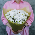 Букет из 5 белых кустовых ромашковых хризантем в матовой пленке с атласной лентой - это стильный и элегантный подарок для любого повода. Белые кустовые хризантемы, собранные в монобукет, украсят любой праздник или торжественное событие.