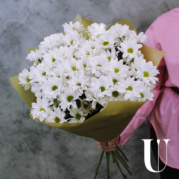 Классический букет из 9 белых кустовых ромашковых хризантем в матовой пленке с атласной лентой — это стильный и элегантный подарок для любого повода. Белые кустовые хризантемы в букете создают неповторимую нежную композицию, которая придется по вкусу даже самому искушенному получателю.