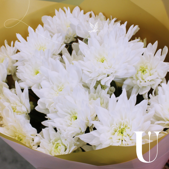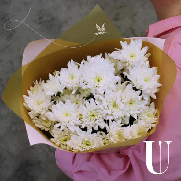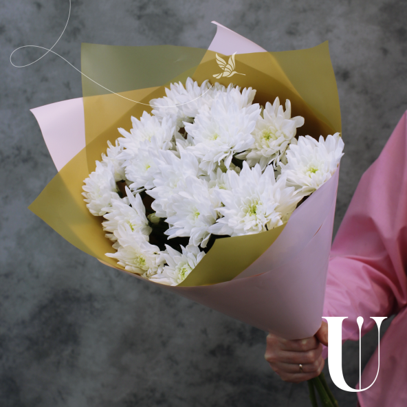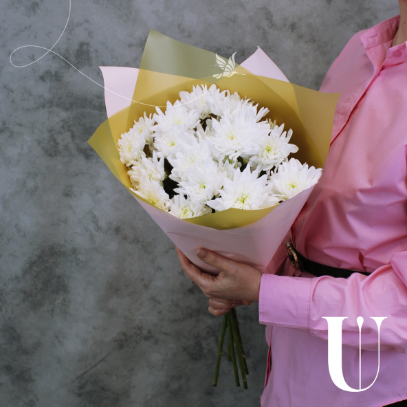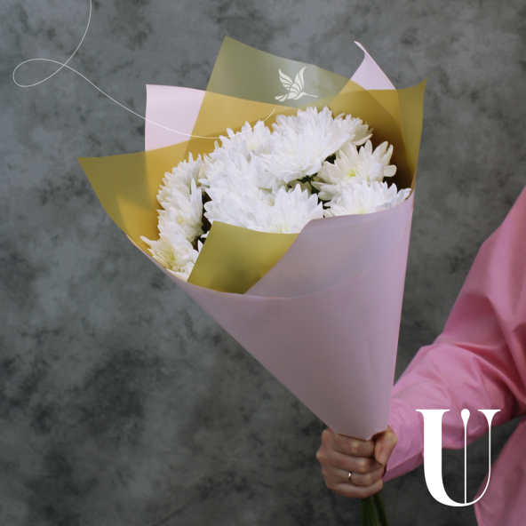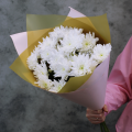 Классический букет из 5 белых кустовых хризантем в матовой пленке с атласной лентой — это стильный и элегантный подарок для любого повода. Белые кустовые хризантемы в букете создают неповторимую нежную композицию, которая придется по вкусу даже самому искушенному получателю.