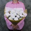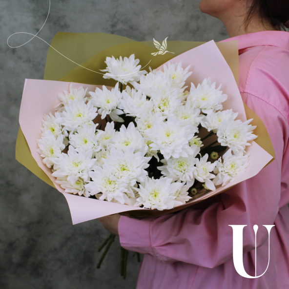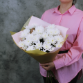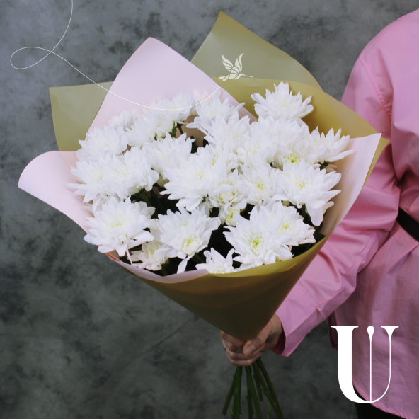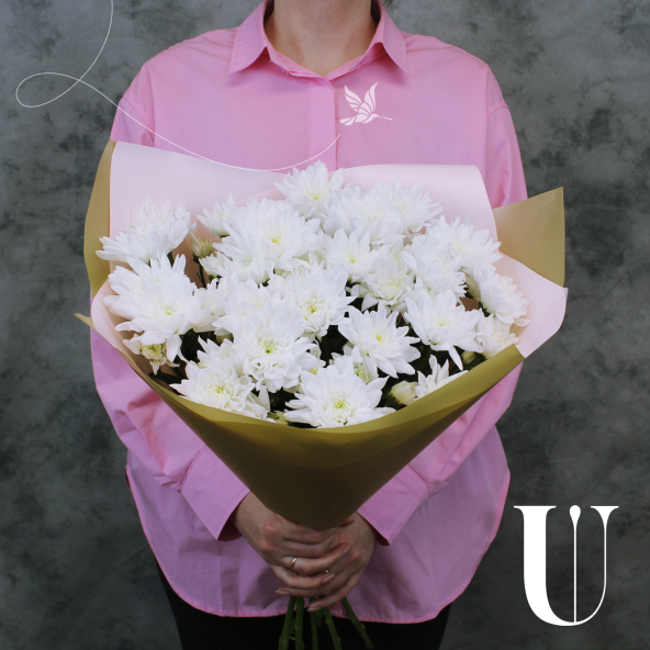 Классический букет из 7 белых кустовых хризантем в матовой пленке с атласной лентой — это стильный и элегантный подарок для любого повода. Белые кустовые хризантемы, собранные в монобукет, украсят любой праздник или торжественное событие.