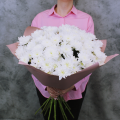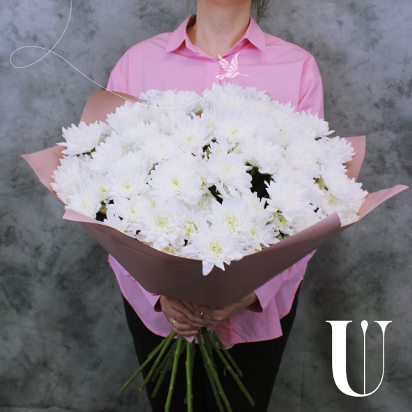 Классический букет из 15 белых кустовых хризантем в матовой пленке с атласной лентой — это отличный выбор для тех, кто хочет подарить радость и тепло близким людям.