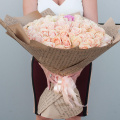 Букет оформлен в крафт-бумагу, что придает ему стильный и современный вид.