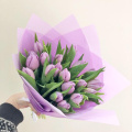 Монобукет из 25 фиолетовых тюльпанов в упаковке