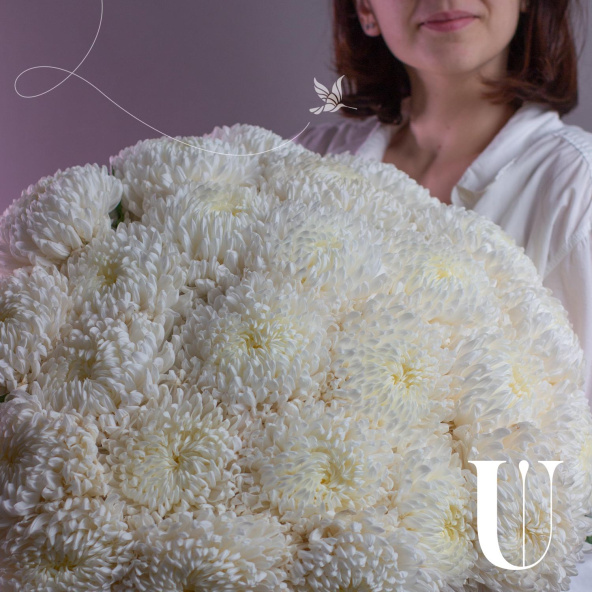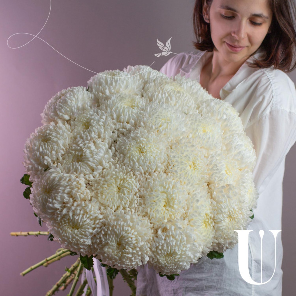 Большой букет из 51 пионовидной розы сорта Вайт Охара