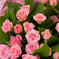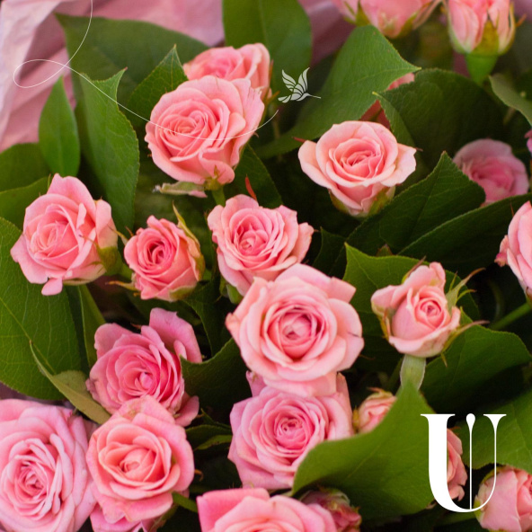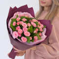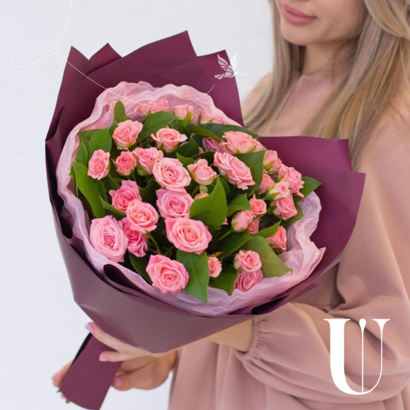 Букет из 11 розовых кустовых роз в дизайнерской бумаге