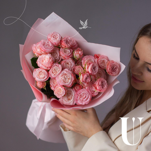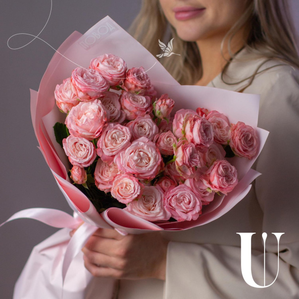 - Роза кустовая пионовидная, Бомбастик, нежно-розовая - 9 шт