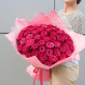 Букет из ярко-малиновых роз "Шангрила" - это стильный и элегантный подарок, который подойдет для любого повода.
