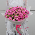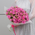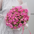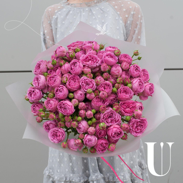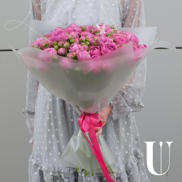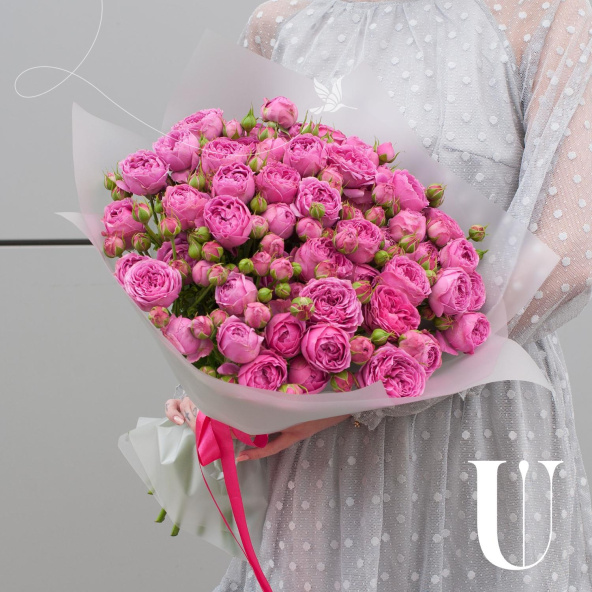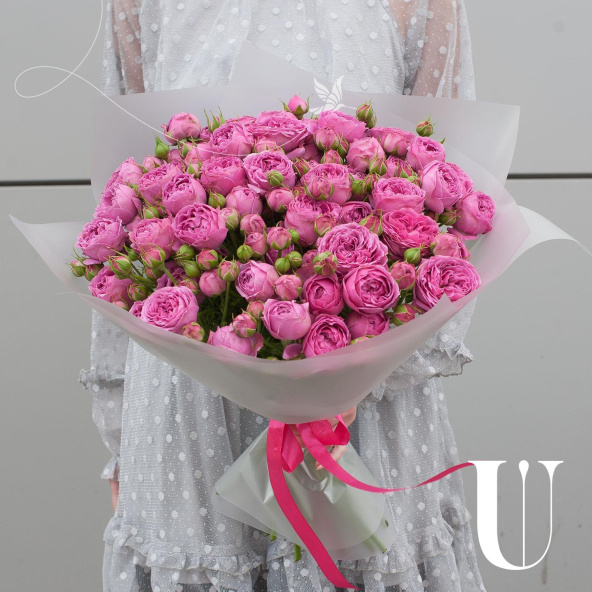 Букет состоит из 19 кустовых пионовидных роз розового цвета, что делает его ярким и запоминающимся. Розы - символ любви и нежности, поэтому такой букет будет приятным сюрпризом для любого человека.