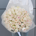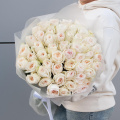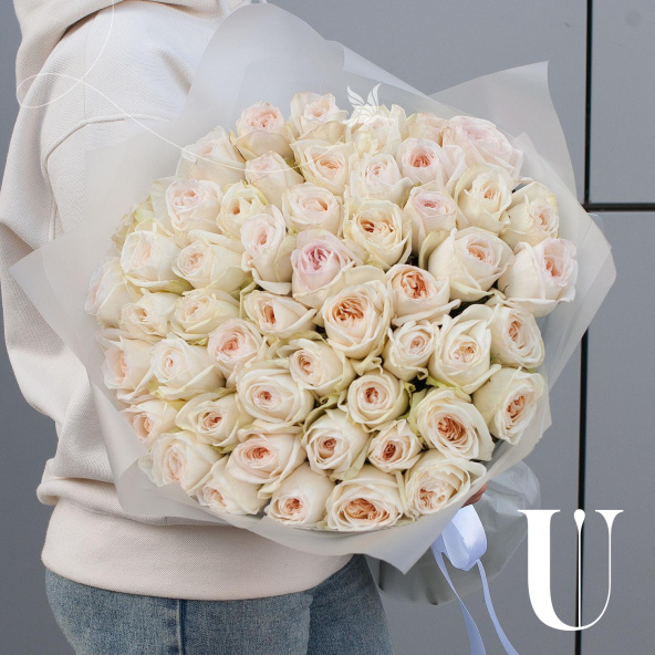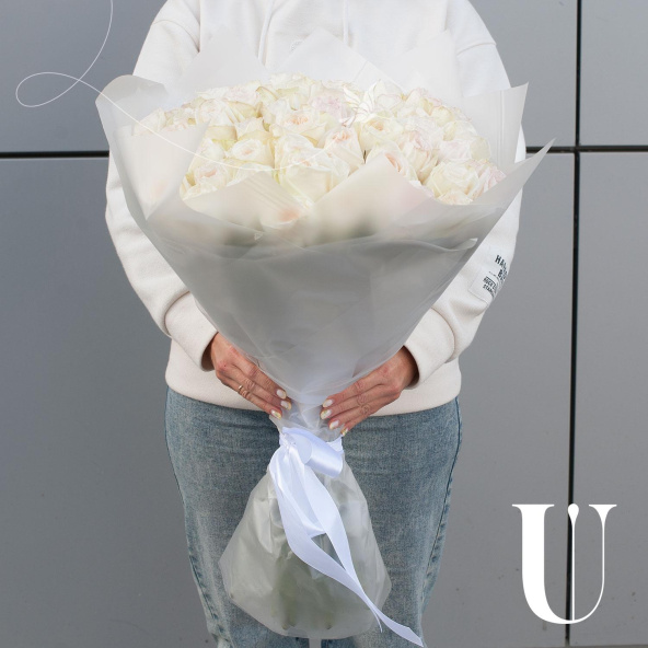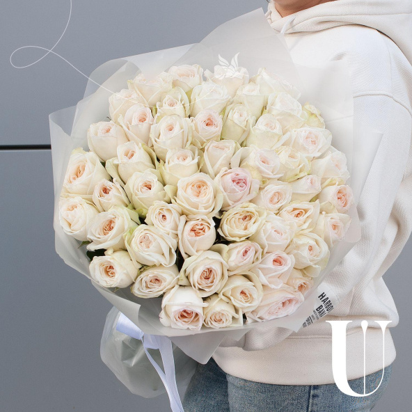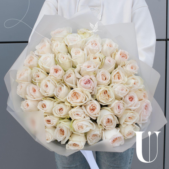 Букет состоит из 49 пионовидных роз белого цвета, что делает его элегантным и изысканным. Розы имеют парфюмированный запах, который будет радовать вас и окружающих на протяжении всего времени, проведенного с букетом.