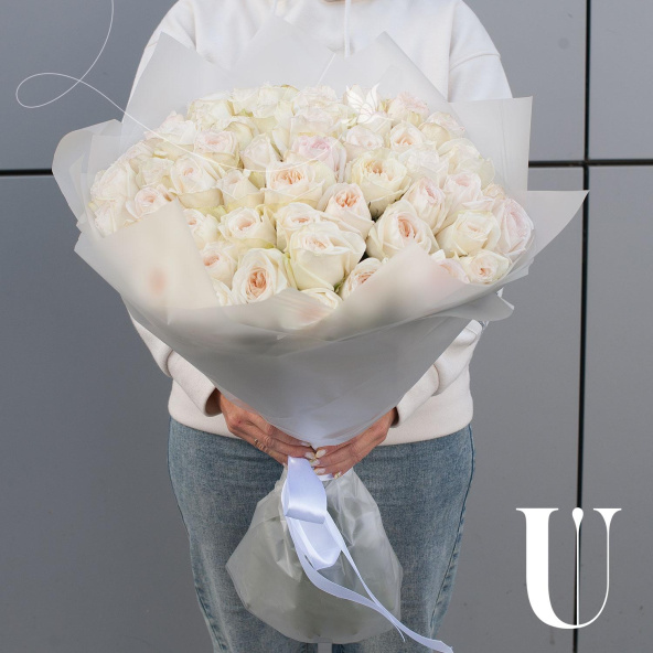 Букет из пионовидных роз "Вайт Охара" - это уникальное сочетание красоты и аромата.