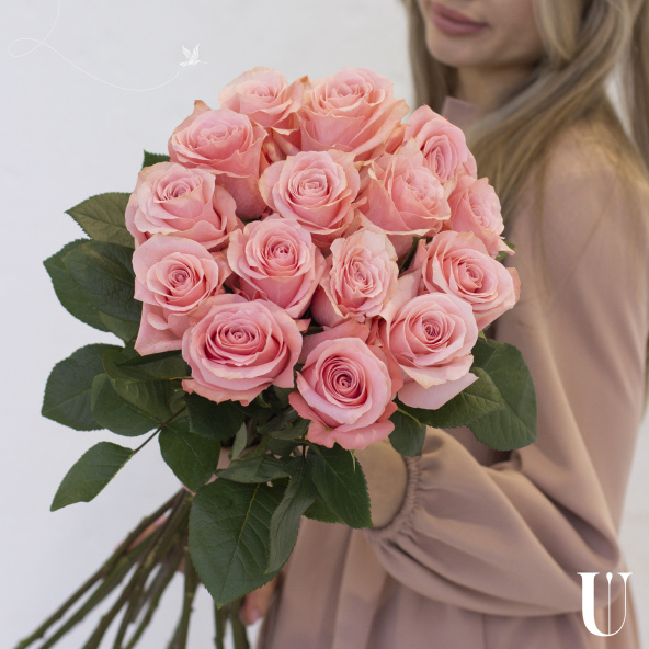 Букет из роз сорта Шармант и Маритим в дизайнерской упаковке