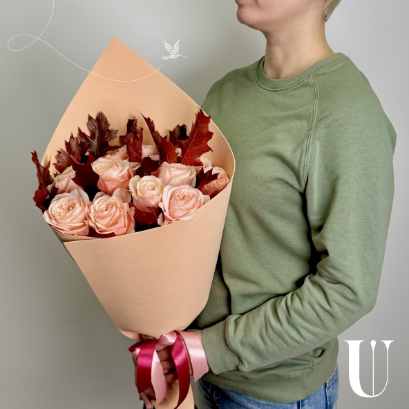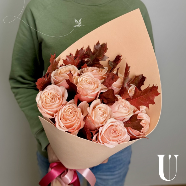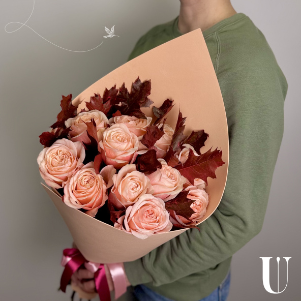 Букет из роз сорта Кахала и пионовидной розы Мисс Бомбастик
