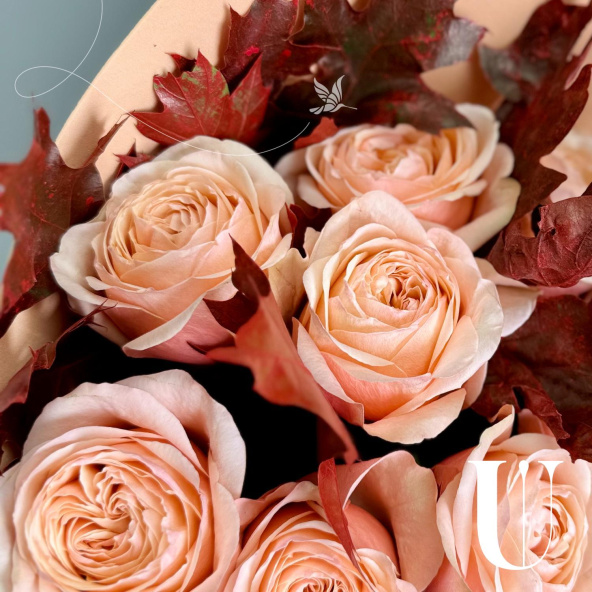 Роскошный букет из роз сорта Кантри Блюз в дизайнерской упаковке