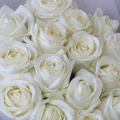 Букет из белых кустовых пионовидных роз сорта Бомбастик в упаковке