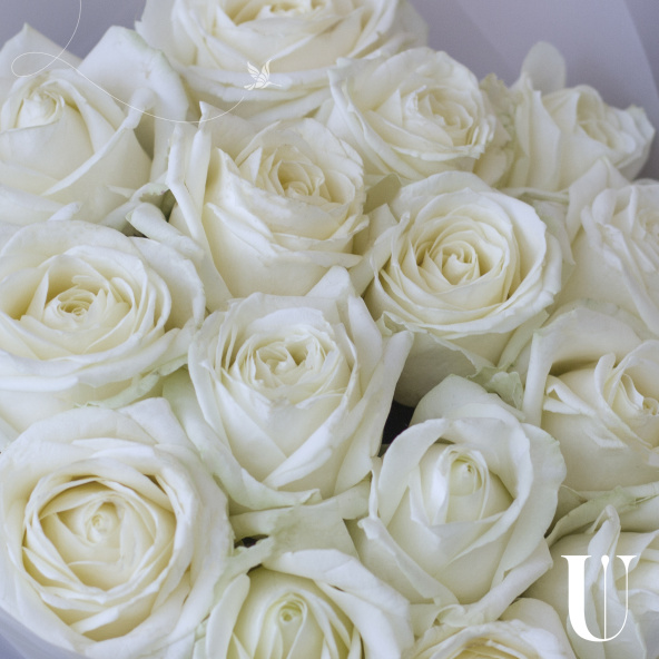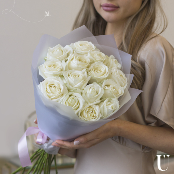 Монобукет из 11 роз Вайт Охара в розовой упаковке