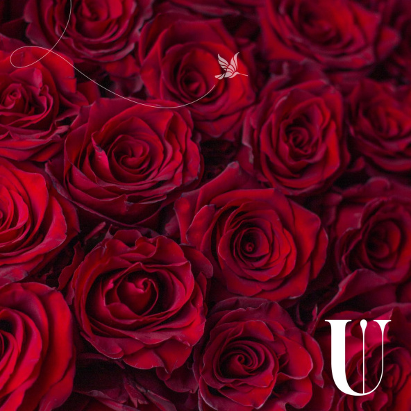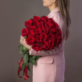 Букет из 51 розы сорта Ред Наоми в дизайнерской пленке