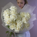Монобукет из кустовых пионовидных роз Мисти Бабблз в дизайнерской упаковке