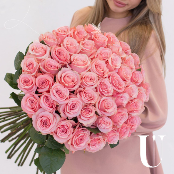 Роза Ангажемент, Эквадор, розовая, 70 см. - 51 шт