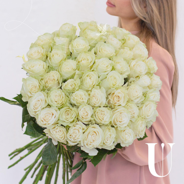 Роза Мондиаль, Эквадор, белая, 70 см. - 51 шт