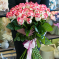 Монобукет из 51 розы Ред Наоми в розовой упаковке
