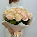 Монобукет из 25 роз сорта Плаяй Бланка в упаковке