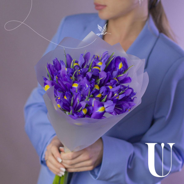 Монобукет из 15 альстромерий с зеленью в крафтовой упаковке