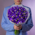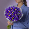 Букет из малиновых роз Кантри Блюз и роз Пинк Мондиаль в дизайнерской упаковке