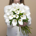 Букет невесты из роз сорта Вайт Охара и белых эустом