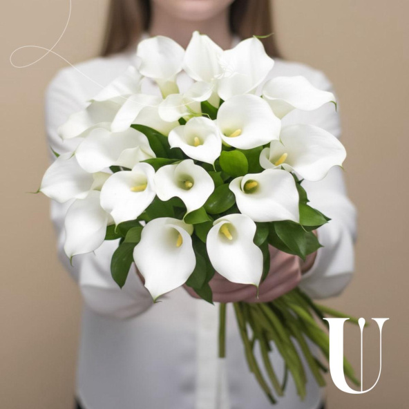 Белоснежный монобукет из 25 роз сорта Мондиаль 70 см