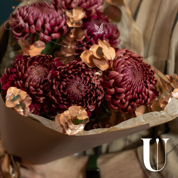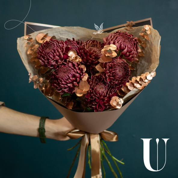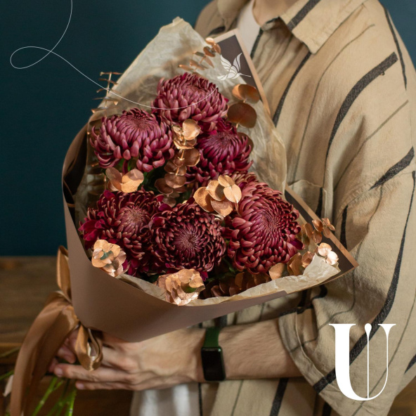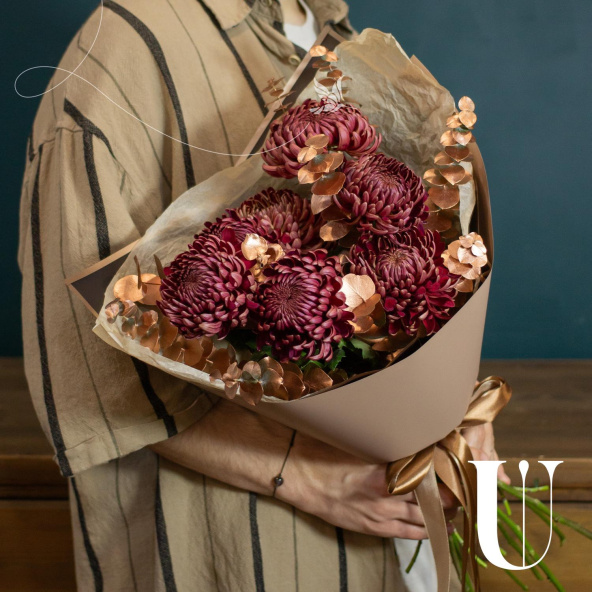 - Хризантема Бигуди, бордовая, 50 см - 7 шт