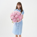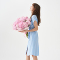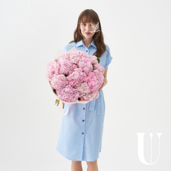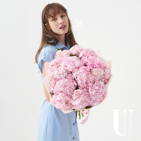 Монобукет из розовых кустовых пионовидных роз в упаковке