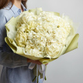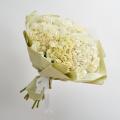 Букет из белых кустовых пионовидных роз сорта Бомбастик в упаковке