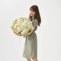 Монобукет из 3 гортензий микс и гипсофилы в упаковке