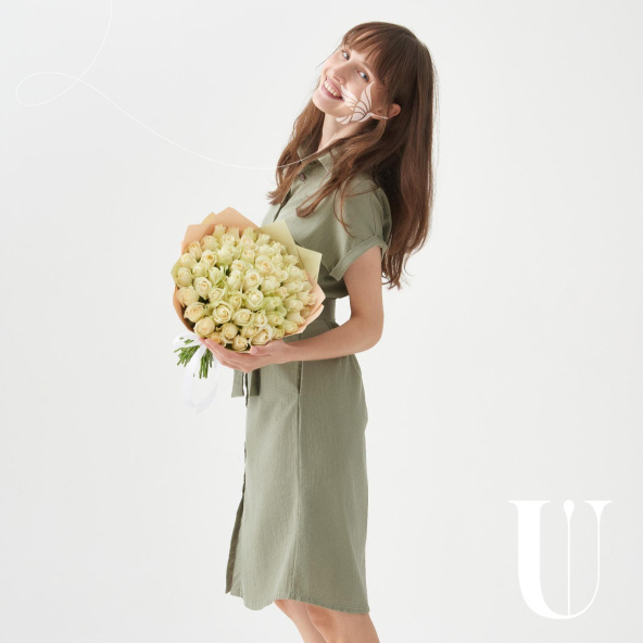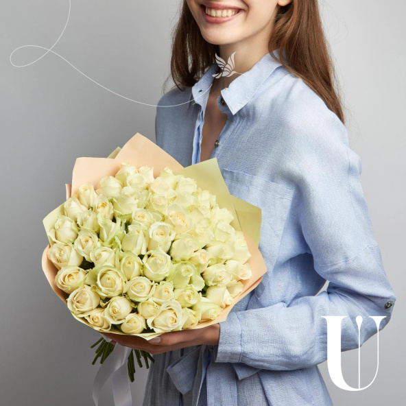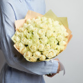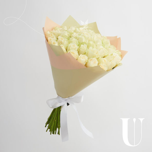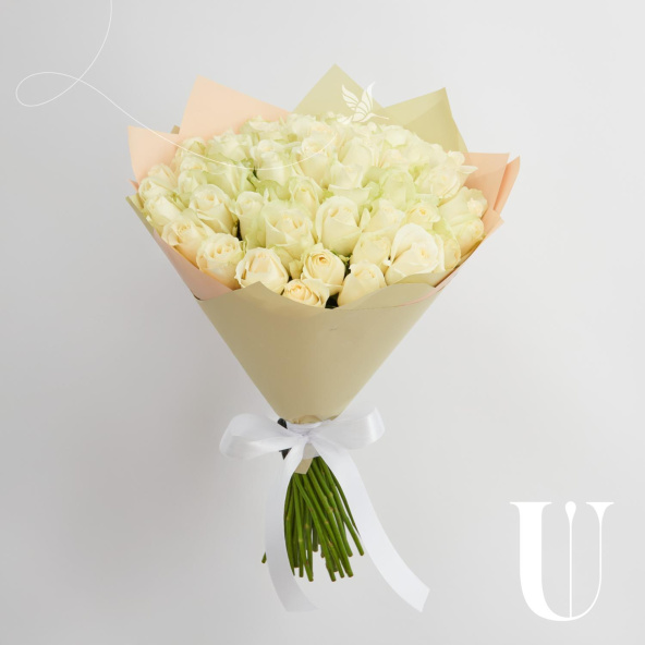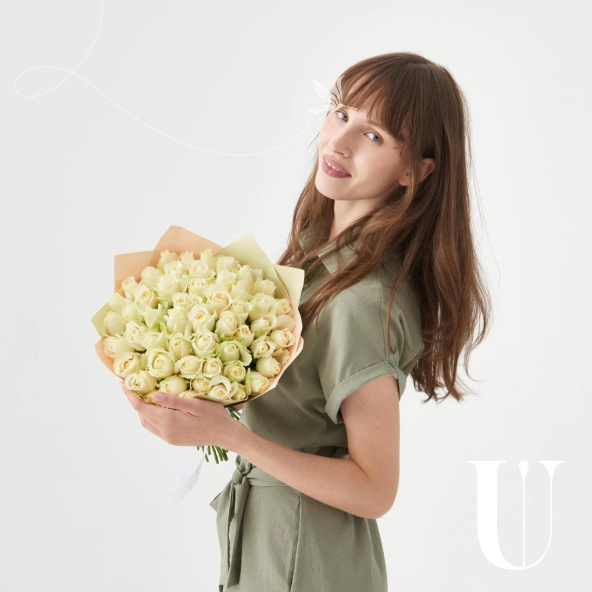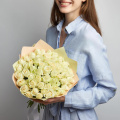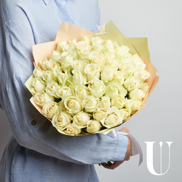 Монобукет из 11 роз Вайт Охара в розовой упаковке
