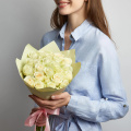 Монобукет из пионовидных роз сорта Лондон Ай в упаковке