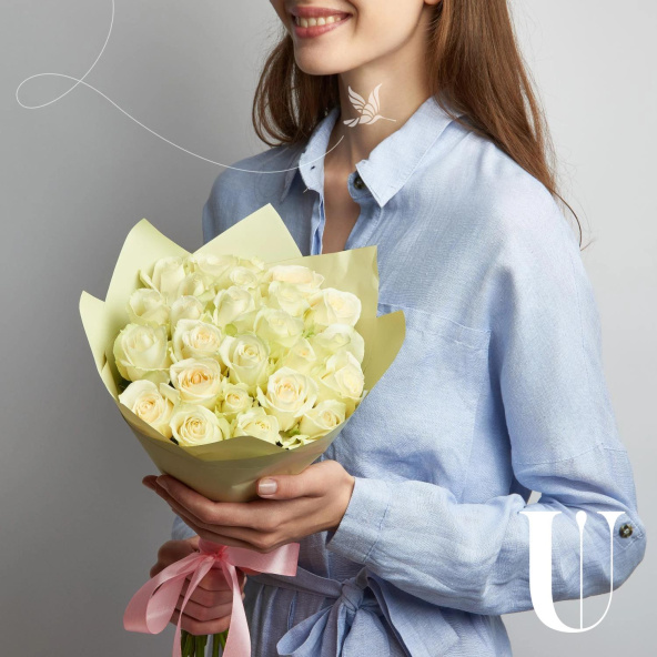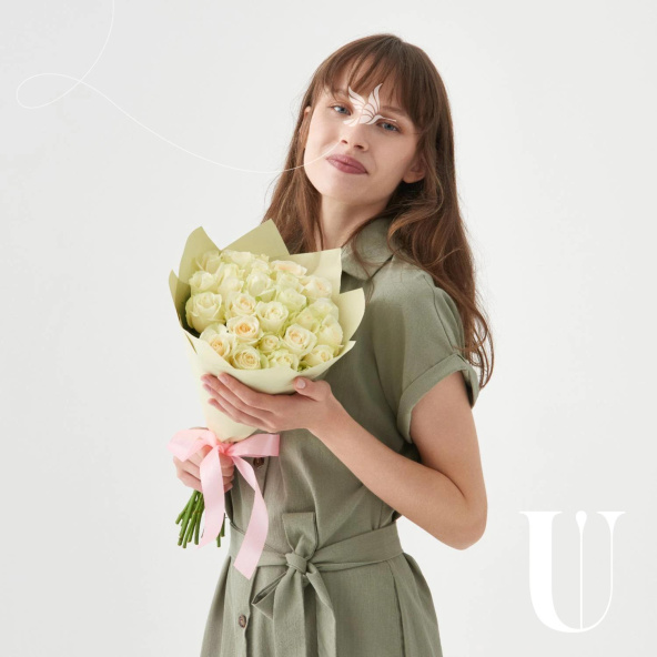 Монокомпозиция из кустовых роз в дизайнерской упаковке