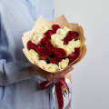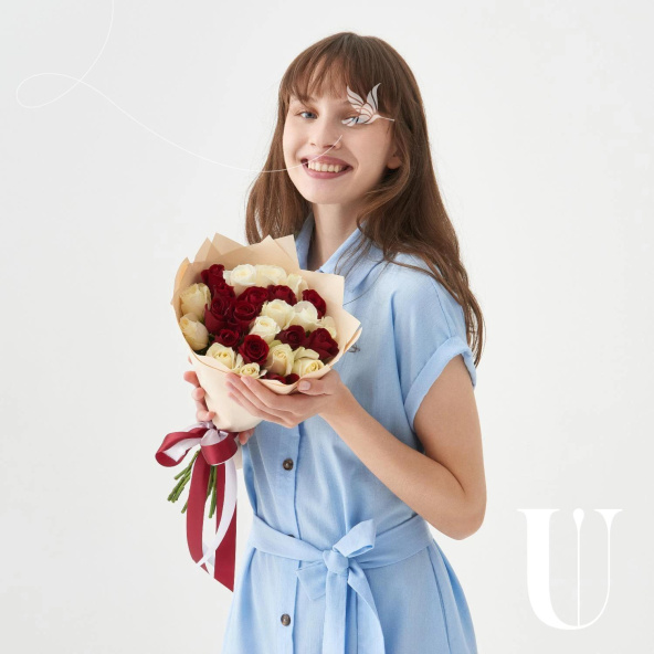 Монокомпозиция из кустовых роз в дизайнерской упаковке