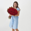 Монобукет из 101 розы сорта Аваланж и Гран При