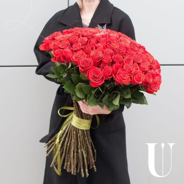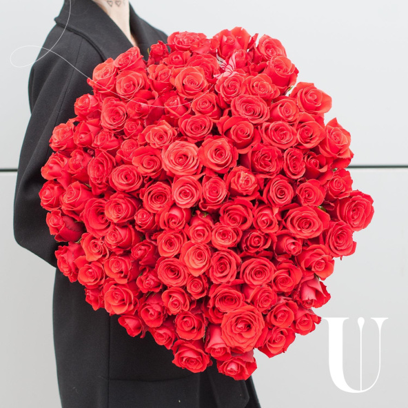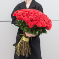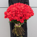 Букет состоит из 101 красной розы, что делает его ярким и запоминающимся. Розы премиум класса, выращенные в Эквадоре, отличаются своей красотой и ароматом.
