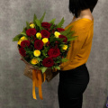 Монобукет из 19 роз сорта Миритим с атласной лентой