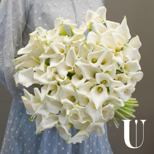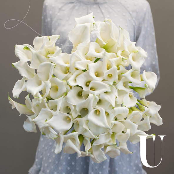 Букет из белых калл "Лиз Шармель" - это элегантное и стильное решение для любого повода.