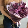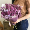 Букет фиолетовой гортензии в фиолетовой упаковке