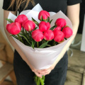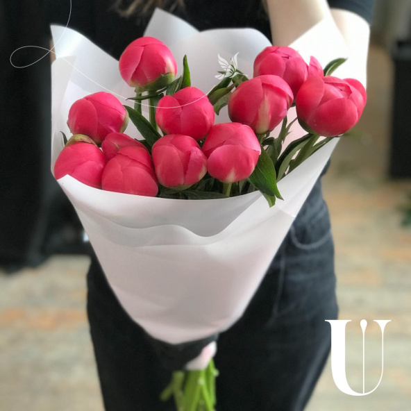 Мини-букет из 5 розовых пионов в пленке