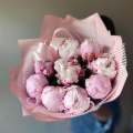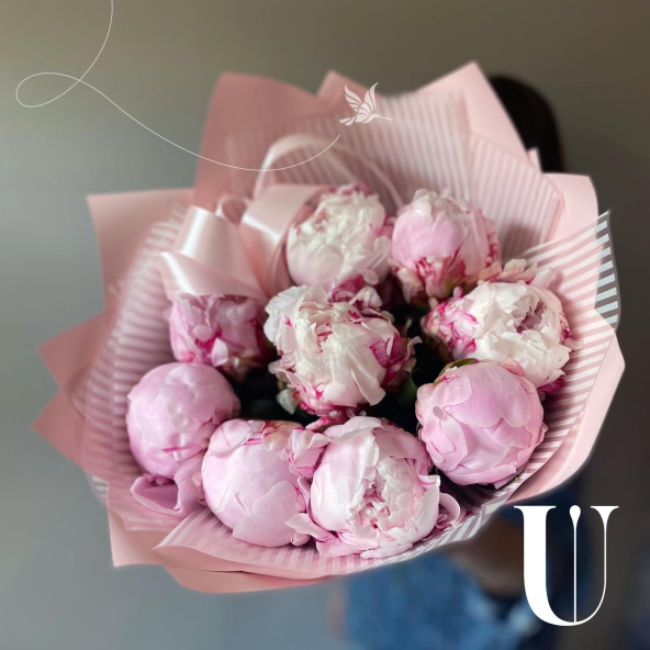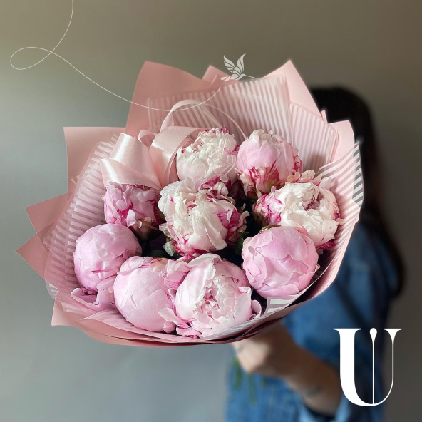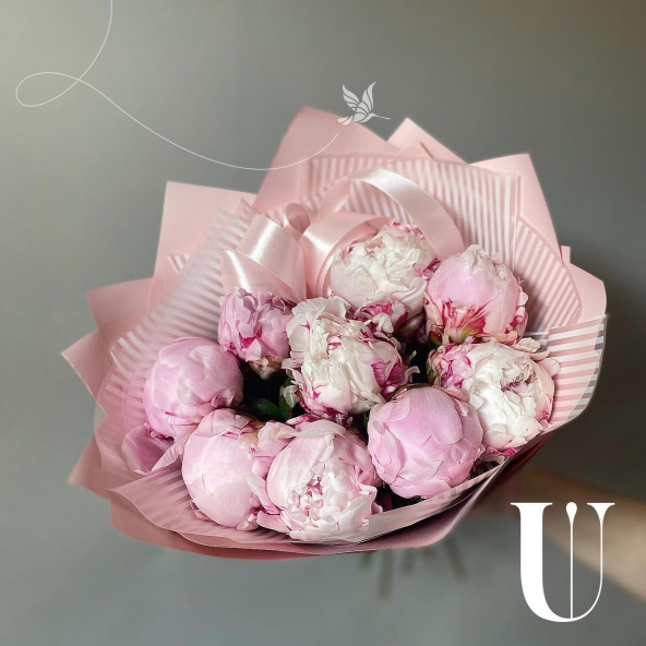 Монобукет из 9 розовых пионов сорта Сара Бернар