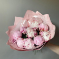 Нежные кустовые пионовидные розы в дизайнерской упаковке