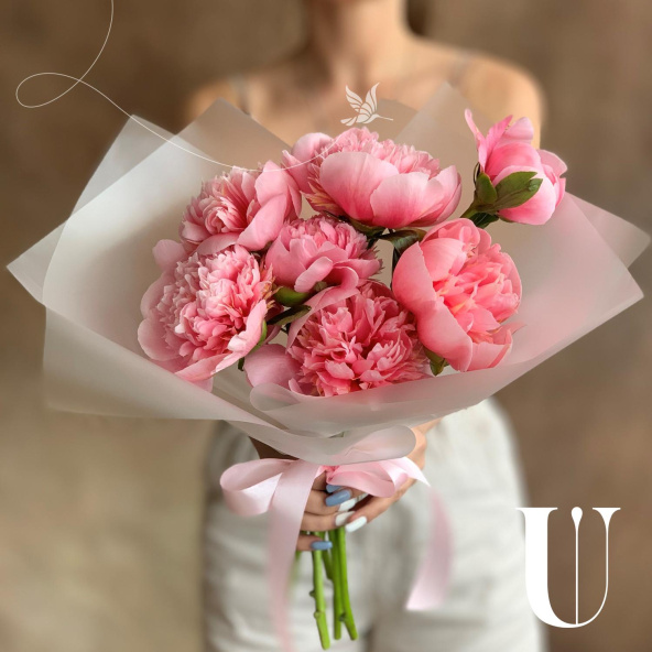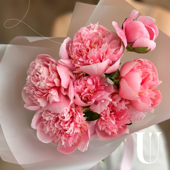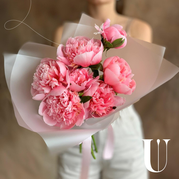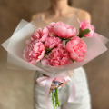 Монобукет из 9 коралловых пионов сорта Корал Шарм