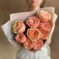Монобукет из 19 персиковых роз в упаковке
