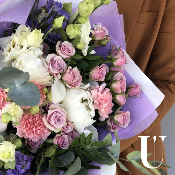 Нежная композиция будет долго радовать получателя своей красотой и стойкостью