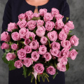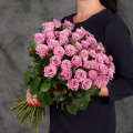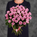 Монобукет из кустовых пионовидных роз Мисти Бабблз 50 см в розовой упаковке